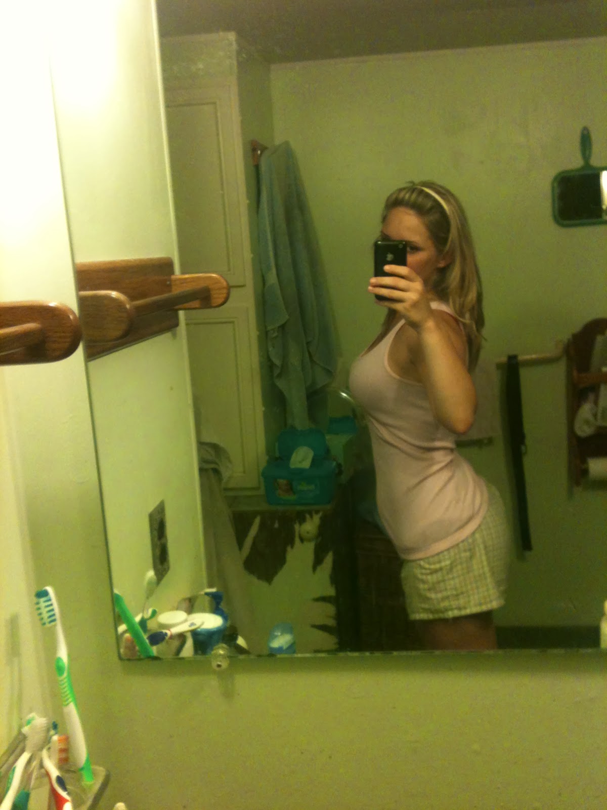In this picture taken at my in-laws' bathroom, I weighed approximately 140 lbs. Yes, I had a big butt and still do. It's a puerto rican thing. No "Brazilian Butt Lift" necessary ever.