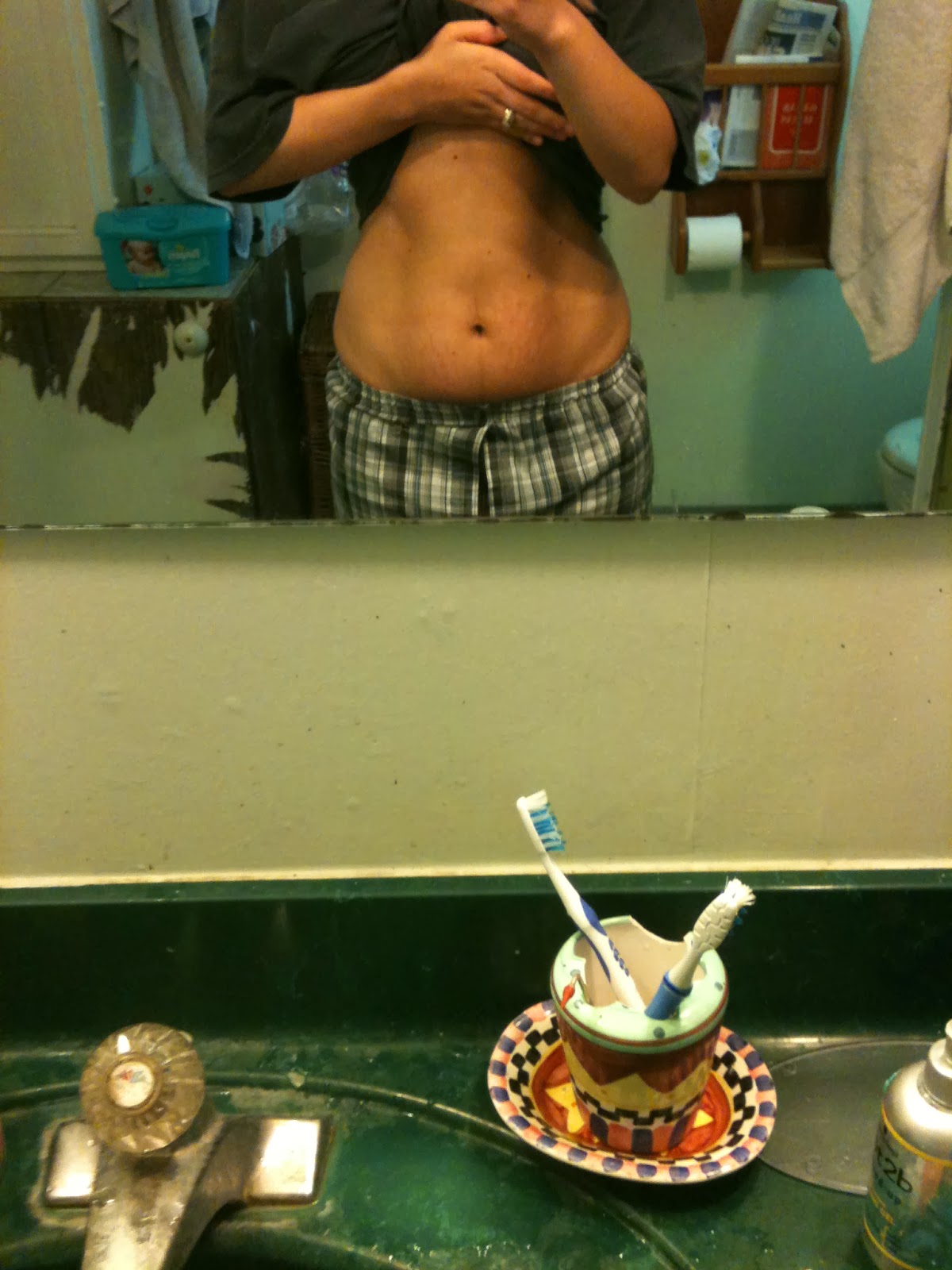 This was taken a few weeks ago. Notice that my stretch marks have faded, and my stomach is now toned.